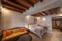 This unique suite combines our philosophy of marrying the traditional and the modern with natural materials. The iron bed with the wooden sofa in front of the stone fireplace together with the glass spacious luxury bathroom create the perfect harmony and warmth. Drink your coffee on the terrace in front of the garden under the stone arches that will offer you coolness.