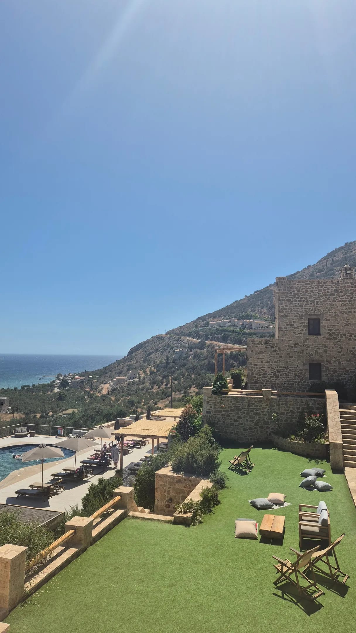 Comfort suite with jacuzzi in traditional bathroom and two private balconies to choose mountain view or side sea and pool view. Outside sitting area perfect for couples and relaxation.
