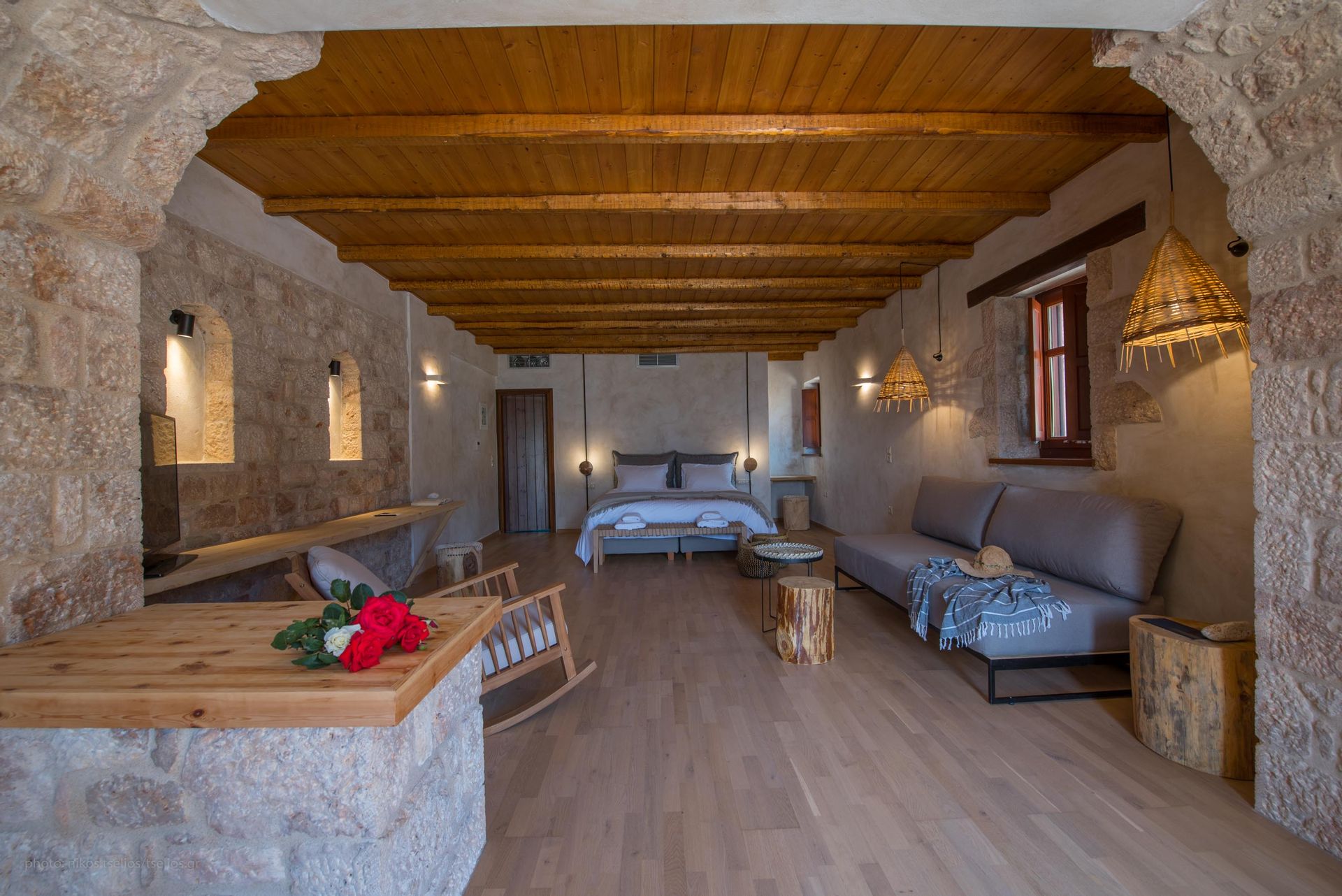 Premium suites is the new addition to our hotel complex. It consists of new aesthetically pleasing furniture with earthy tones made of natural materials such as stone, iron, wood and marble. The bathrooms are spacious with shower, bathtub, jacuzzi and two washbasins. They also have a seating area on the private balcony to comfortably enjoy the view. Also includes Apivita bath amenities, king size double bed and window protection net for summer period.